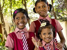 Bildung verändert das Leben von Mädchen und schenkt ihnen eine Zukunft: Drei Mädchen aus einem indischen SOS-Kinderdorf in Schuluniform. Foto: Ahmad Firoz