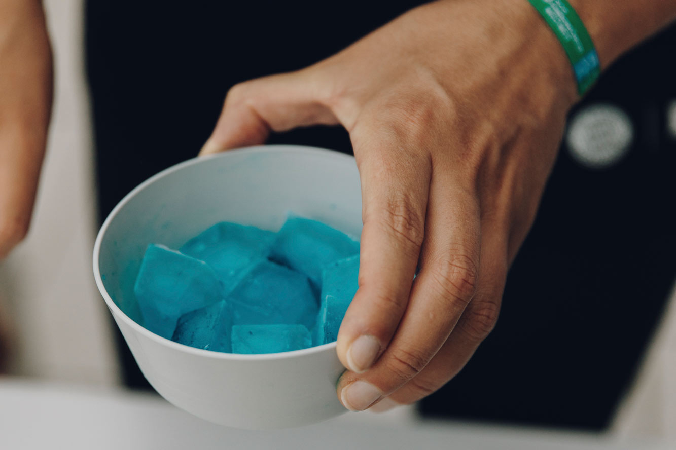 "Wow, das sieht echt cool aus!", sagt Miguel, 11 Jahre alt, als er die Eiswürfel beobachtet, wie sie langsam im Wasser dahin schmelzen. Kleiner Gag: die Pädagoginnen haben die Eiswürfel vorher mit Lebensmittelfrabe blau eingefärbt. Das blaue Schmelzwasser formt interessante Muster auf der Wasseroberfläche und hat so gleich zweierlei Zweck: Die Kinder staunen, sind interessiert und wollen mitmachen. Und außerdem ist das Schmelzwasser am Ende des Experiments deutlich sichtbar. Johanna, 12 Jahre alt, ist jedenfalls begeistert. "Man sieht richtig, wie der Pegel in der Schale nach dem Schmelzen ansteigt."