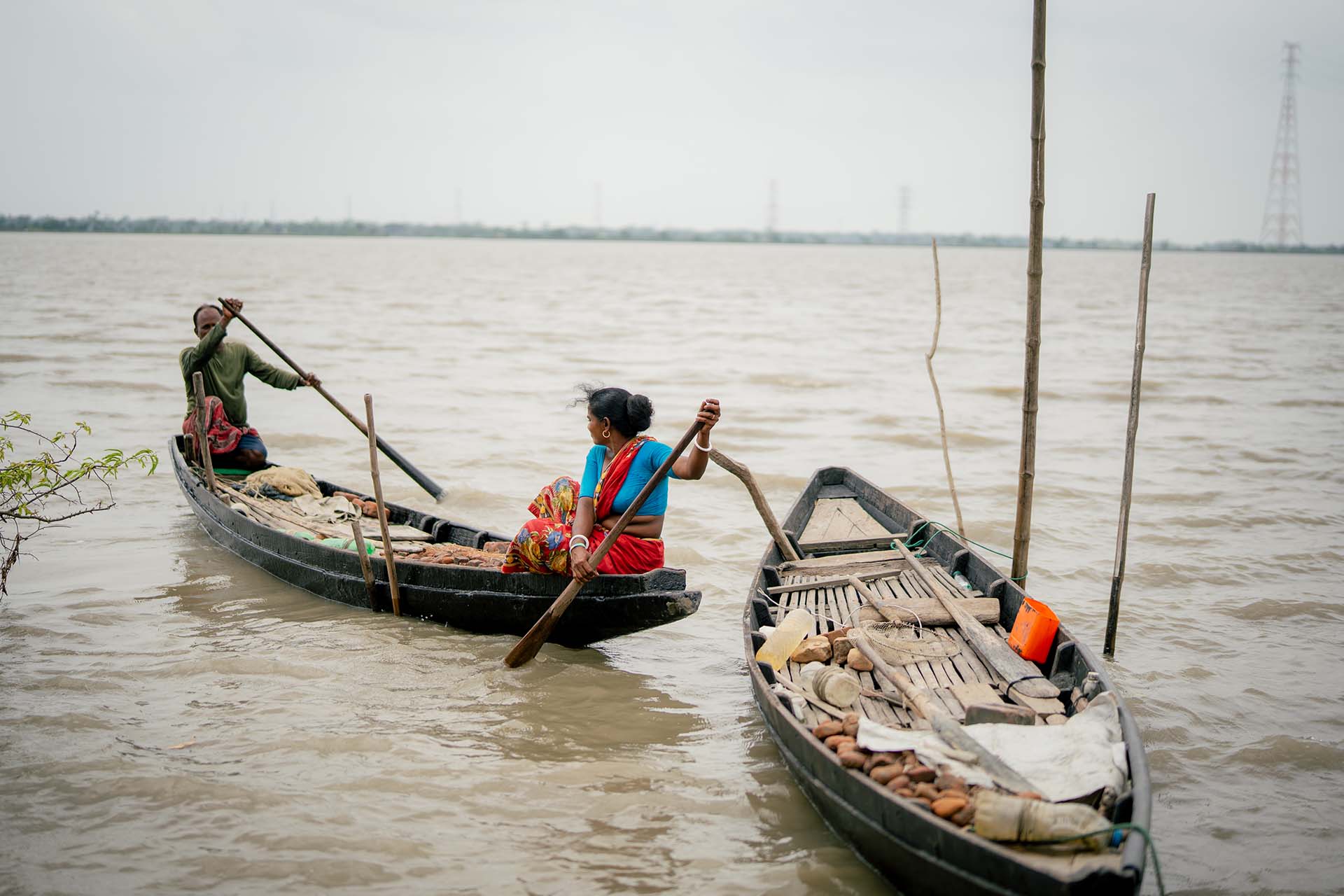 Vor einigen Jahren war die finanzielle Situation der Familie prekär: Muktys Mann verdiente mit dem Fang von Fischen und Krabben nicht genug, um die Familie zu ernähren und an Bildung für die Kinder war nicht zu denken. Dann stellte eine Katastrophe ihr Leben völlig auf den Kopf: Eine Fluss-Erosion zerstörte ihr Zuhause. “Wir standen vor dem Nichts”, erinnert sich Muktys Mann.